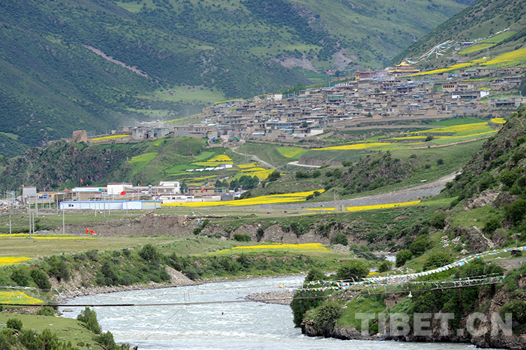 羊秀白嘎風(fēng)景區(qū)的美麗景觀。“蘇毗古遺址群落”就廣泛分布在這里。前面流淌的是杰曲河水(唐召明2014年7月9日攝)