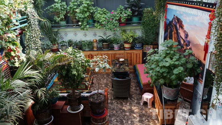 德瓊家庭旅館以女主人次仁德瓊的名字命名。工作人員告訴我們,這里是拉康鎮(zhèn)生意最好的旅館之一。旅館位于兩條主干道交接的拐角,地理位置好,招牌也立得醒目,每個(gè)進(jìn)入鎮(zhèn)子的人第一眼就能看到德瓊家庭旅館的招牌。但生意好絕不僅僅是因?yàn)榈乩砦恢脙?yōu)越。走進(jìn)這間旅館,如同進(jìn)入一間溫室花棚。在這里,花草植物是絕對(duì)的主角,各色草本、藤本、灌木植物高低錯(cuò)落,幾乎填滿(mǎn)了墻壁空間。蕭瑟的冬日里,粉的、白的、紅的花朵擠擠挨挨地開(kāi)著,茉莉、山茶、三角梅...來(lái)自不同地域的花卉植物在這邊境小鎮(zhèn)的一隅競(jìng)相綻放,天南海北在此握手言和。德瓊阿佳用她對(duì)生活的熱情將家庭旅館裝點(diǎn)得生機(jī)盎然,我想正是這份純真的熱愛(ài)才是德瓊家庭旅館生意火爆的關(guān)鍵所在。