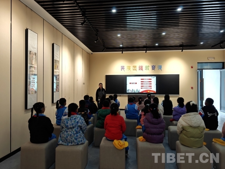 圖為開館儀式當天,當?shù)貙W(xué)生在展館內(nèi)上民族團結(jié)教育課
