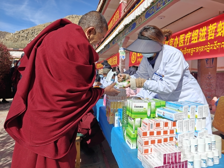 中國(guó)西藏網(wǎng)訊 “收到今天有北京醫(yī)療專(zhuān)家過(guò)來(lái)義診的消息,我一大早就過(guò)來(lái)了。身體平時(shí)沒(méi)什么大的毛病,就想著借此機(jī)會(huì)檢查一下,畢竟年紀(jì)大了?!?6歲的哲蚌寺僧人加參高興地說(shuō)。為了讓哲蚌寺僧人和周邊民眾在家門(mén)口就能享受到優(yōu)質(zhì)的醫(yī)療服務(wù),傳播健康生活理念,提高健康意識(shí),3月29日,西藏自治區(qū)人民政府駐北京辦事處(以下簡(jiǎn)稱(chēng):京辦)組織北京11家重點(diǎn)醫(yī)院的12名醫(yī)療專(zhuān)家走進(jìn)位于拉薩市城西的哲蚌寺,開(kāi)展“踔厲奮發(fā)擔(dān)使命 送醫(yī)進(jìn)藏暖民心”義診活動(dòng),得到僧人和群眾的一致稱(chēng)贊。