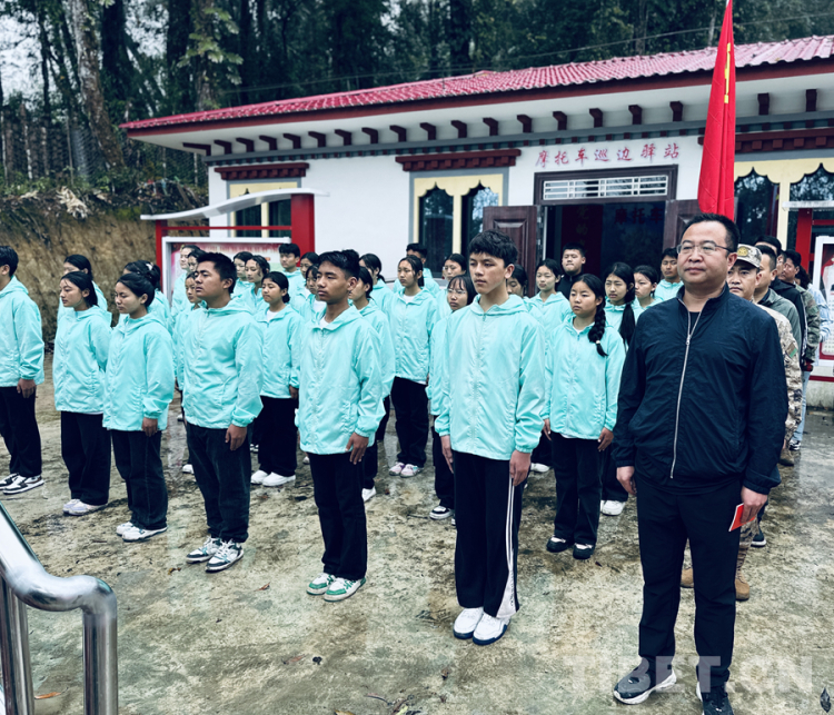 圖為活動期間,35名新入團學(xué)生代表在德爾貢巡邊服務(wù)驛站參加入團儀式