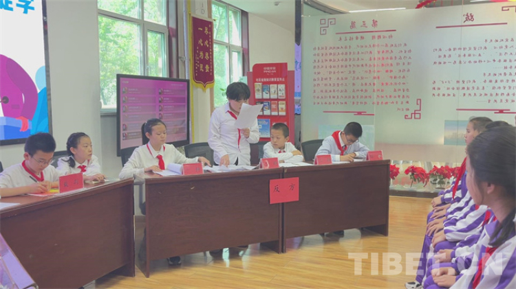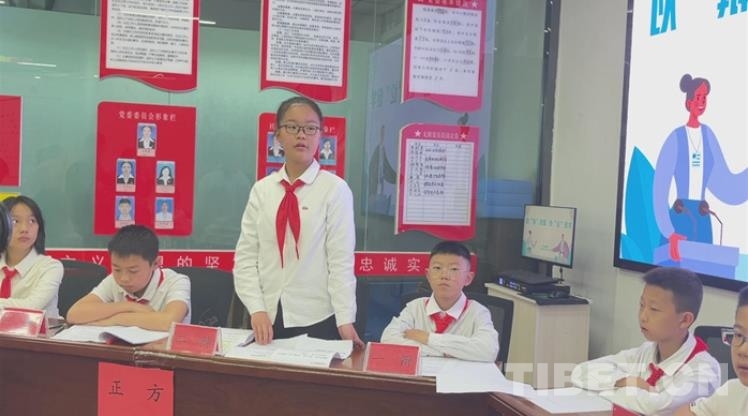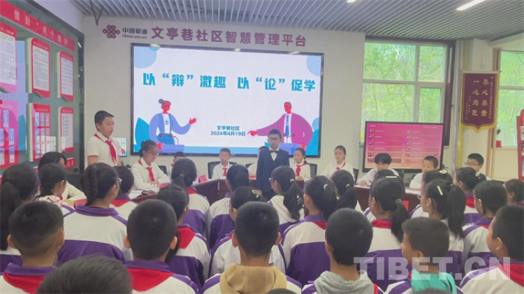 中國西藏網(wǎng)訊 4月19日,青海省西寧市海湖新區(qū)的文亭巷社區(qū)活動(dòng)室里,傳出稍顯稚嫩卻有力的聲音:“今天我們辯論的題目是:中小學(xué)生應(yīng)不應(yīng)該使用電子產(chǎn)品。下面介紹雙方辯手……”這是文匯小學(xué)五年級(jí)二班的學(xué)生在此開展辯論賽。