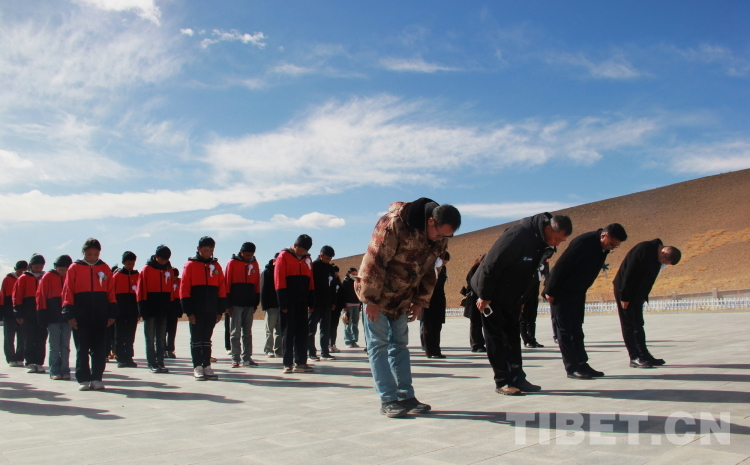 圖為獅泉河烈士陵園祭奠孔繁森同志活動(dòng)現(xiàn)場全場肅立,向孔繁森同志默哀 攝影:劉莉