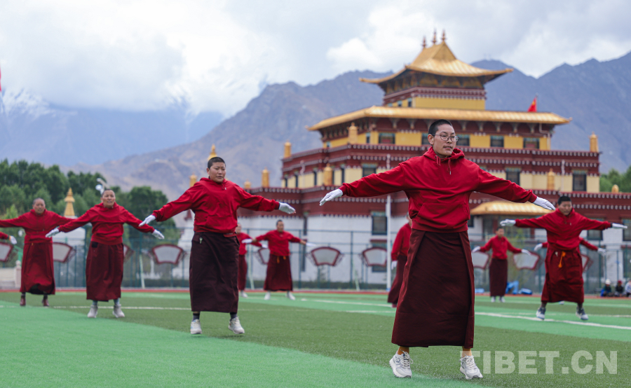 中國西藏網(wǎng)訊 5月8日,西藏佛學(xué)院第六屆運(yùn)動(dòng)會(huì)在拉薩舉行。學(xué)員們踴躍報(bào)名參與,開展養(yǎng)生操、打坐瑜伽、廣播體操等展示和表演。
