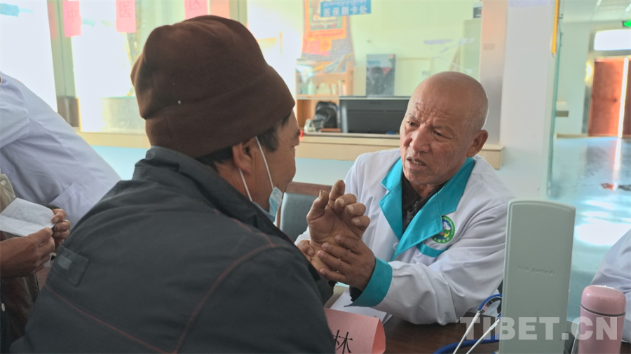 圖為藏醫(yī)專(zhuān)家正在為患者把脈診治 攝影:達(dá)瓦扎巴