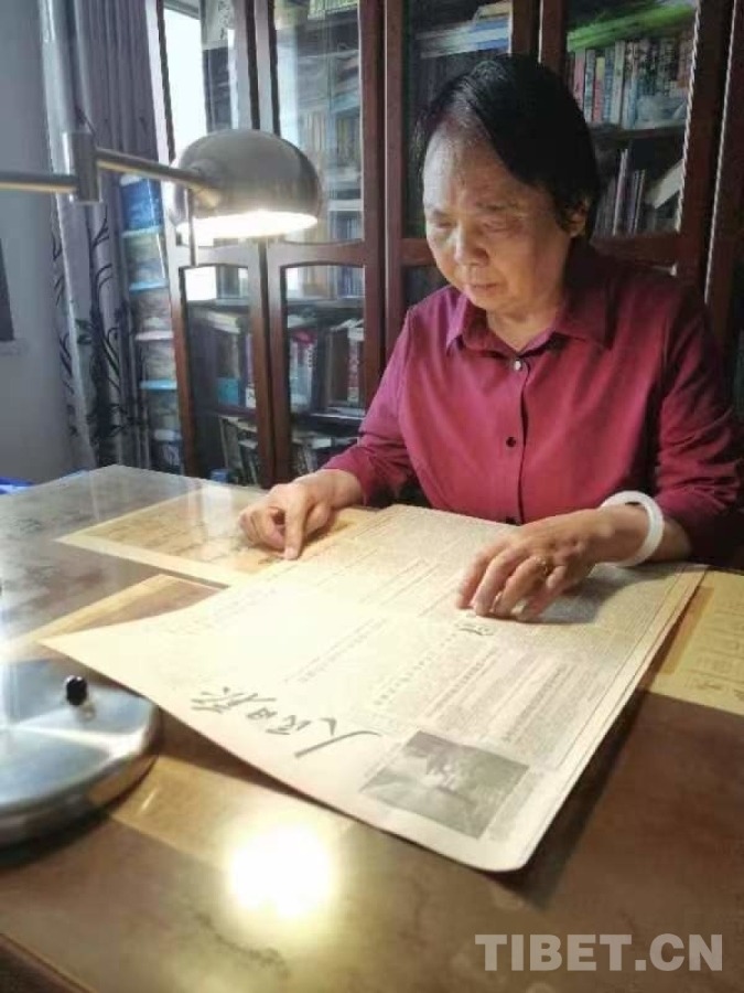 圖為慕曉峰在翻閱當(dāng)年人民日報(bào)關(guān)于青藏公路的報(bào)道 受訪者供圖