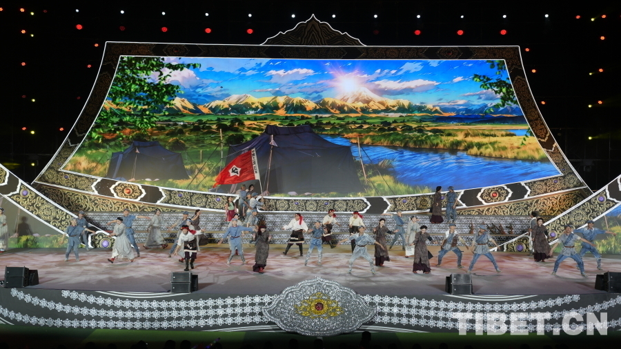 圖為極具藏族特色的火鐮造型舞臺(tái) 攝影 鄒慧