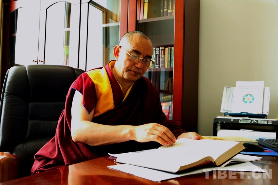 圖為青海省藏語系佛學(xué)院教務(wù)處副處長、特級(jí)經(jīng)師悟嘉倉 攝影:劉莉