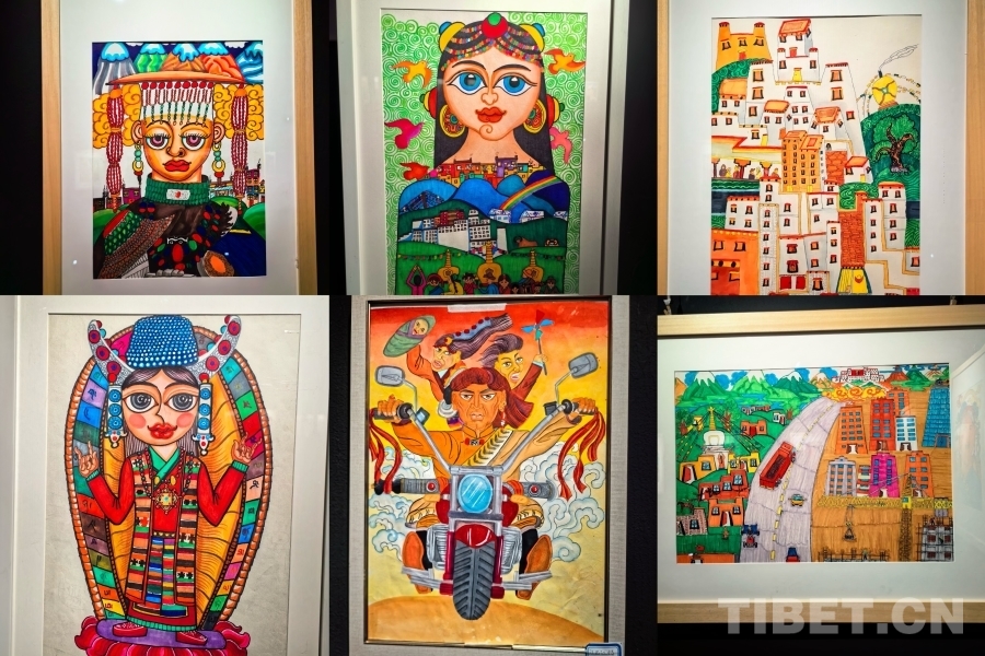 “孩子們平時(shí)都很喜歡畫畫,我們也會(huì)去給他們進(jìn)行指導(dǎo),幫忙修改。有很多很優(yōu)秀的作品,今天我們?cè)谶@里只展示了35幅代表作品供大家欣賞?!爆F(xiàn)任拉薩特殊教育學(xué)校美術(shù)老師的寧曉寒是該校的首屆畢業(yè)生,在從南京特教學(xué)院畢業(yè)后回到母校任教,他在展廳對(duì)著學(xué)生的作品用手語(yǔ)向我們介紹了作品背后的故事?!拔覀兠@人雖然聽(tīng)不到外界的聲音,但是我們可以用手語(yǔ)表達(dá)我們的心聲,用眼睛觀察這個(gè)世界,我希望我們可以勇敢地張口發(fā)音,大膽地嘗試,這樣社會(huì)對(duì)我們的了解也會(huì)發(fā)生變化。我們用眼睛去看這個(gè)世界,用眼睛感受西藏的發(fā)展變化?!?/p>