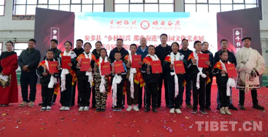 圖為安多縣“鄉(xiāng)村振興 那曲奮進(jìn)”校園文化藝術(shù)展暨首屆“新時代好少年”頒獎典禮現(xiàn)場