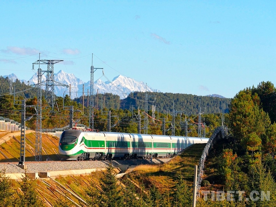 圖為復(fù)興號動(dòng)車組行駛在滇藏鐵路麗香段上 迪慶日報(bào)社供圖