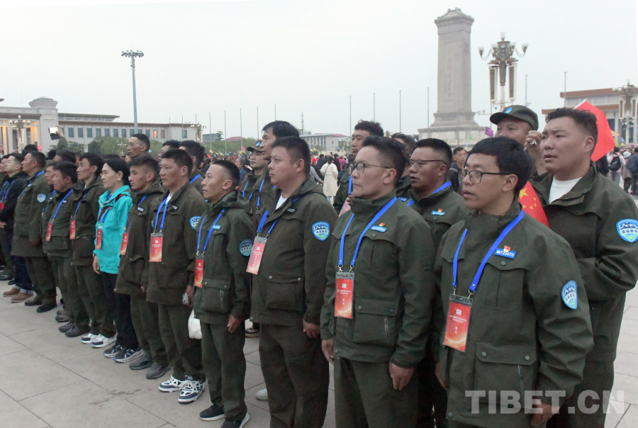 當(dāng)日凌晨,懷著萬分激動(dòng)的心情,來自西藏羌塘、珠穆朗瑪峰國家級(jí)自然保護(hù)區(qū)的野保員一大早就來到了天安門廣場(chǎng),等候國旗冉冉升起的那一刻。