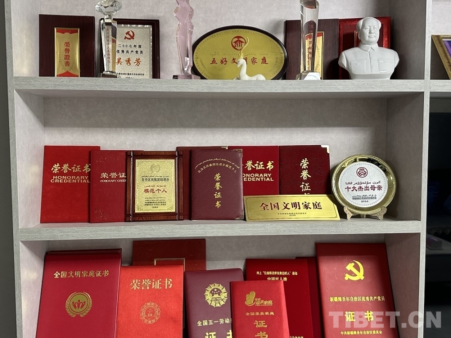 全國(guó)五一勞動(dòng)獎(jiǎng)?wù)芦@得者、全國(guó)民族團(tuán)結(jié)進(jìn)步模范個(gè)人,自治區(qū)民族團(tuán)結(jié)進(jìn)步模范個(gè)人、新疆“十大杰出母親”、全國(guó)文明家庭……記者走進(jìn)吳秀芳老人家,一面碩大的榮譽(yù)墻映入眼簾,這些都是吳秀芳——這位錫伯族母親二十多年風(fēng)雨歷程最好的見(jiàn)證。50年代出生的她,見(jiàn)證了新中國(guó)的成長(zhǎng),也經(jīng)歷了個(gè)人的坎坷與挑戰(zhàn)。