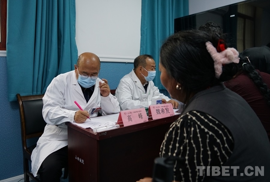 啟動儀式后,醫(yī)療專家團一行來到白玉縣人民醫(yī)院開展義診活動。當日上午,陰雨連天,但醫(yī)療專家們的熱忱絲毫不減,用北京先進的醫(yī)療技術和深厚的人文關懷為當?shù)厝罕妿砹私】蹬c溫暖。