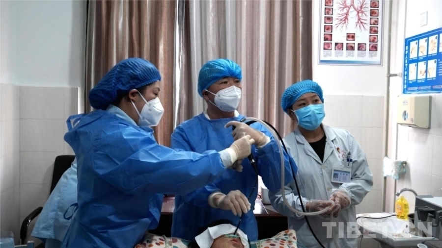 航空總醫(yī)院呼吸科陳乾華主任帶領甘孜縣人民醫(yī)院呼吸科團隊,共同為患者進行了一場精細而復雜的治療。在高清影像的引導下,陳主任將呼吸鏡送入患者體內,對病灶進行了精準定位和治療。治療過程中,陳主任還耐心地向當?shù)蒯t(yī)護人員傳授呼吸鏡介入治療的操作要點和注意事項。