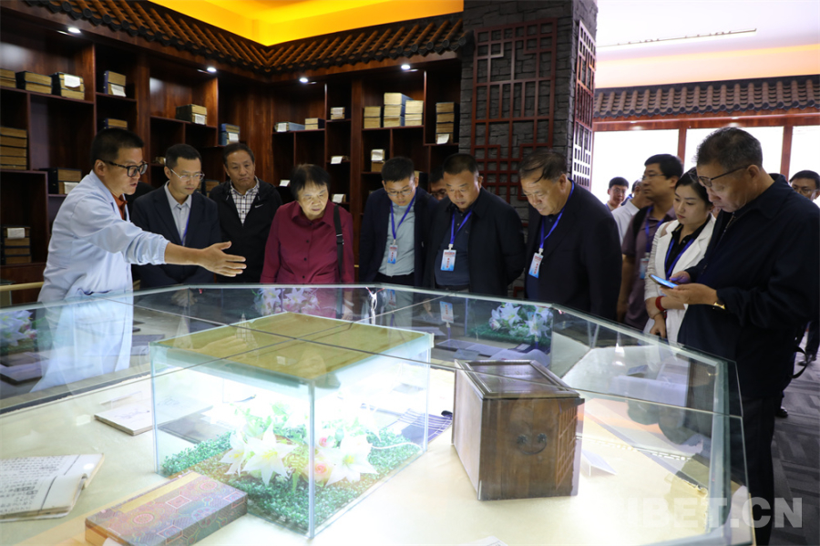 中國西藏網(wǎng)訊 7月10日,傳承弘揚“兩路”精神暨交通變遷與青藏高原現(xiàn)代化研討會青海分會在西寧舉辦。會議期間,“青藏公路之父”慕生忠將軍的女兒慕曉峰、莫河駝場相關負責人以及來自青海省委黨校、青海省社科院、青海民族大學、山西大學等單位的與會人員來到青海民族大學古籍館,參觀了入選《國家珍貴古籍名錄》的館藏珍貴古籍展覽,并認真聆聽古籍館相關負責人的詳細講解,近距離感受了中國古籍的版本之美、紙張之美、刻印之美。