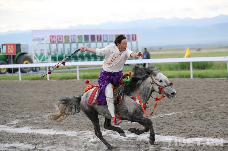 圖為康巴馬術(shù)項(xiàng)目“乘馬拋石” 攝影:達(dá)哇才讓