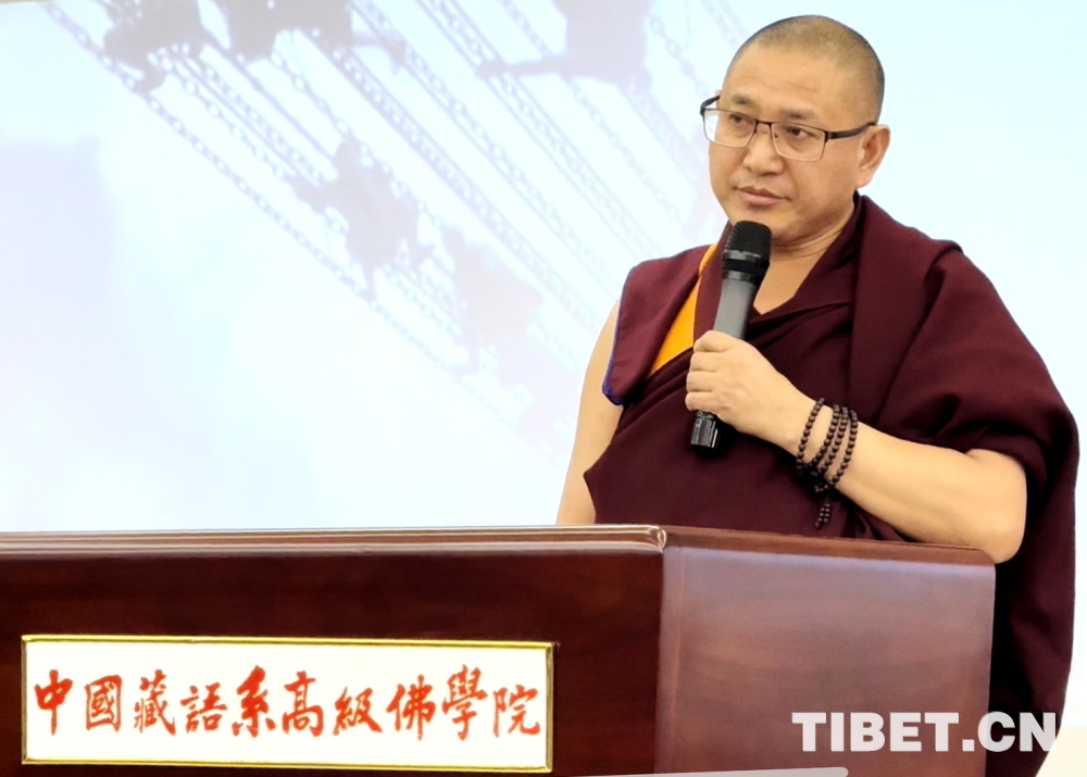 圖為白瑪扎西在中國藏語系高級佛學(xué)院課堂上發(fā)言 供圖:白瑪扎西
