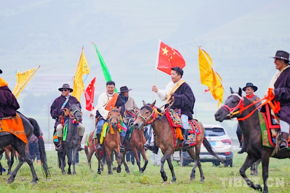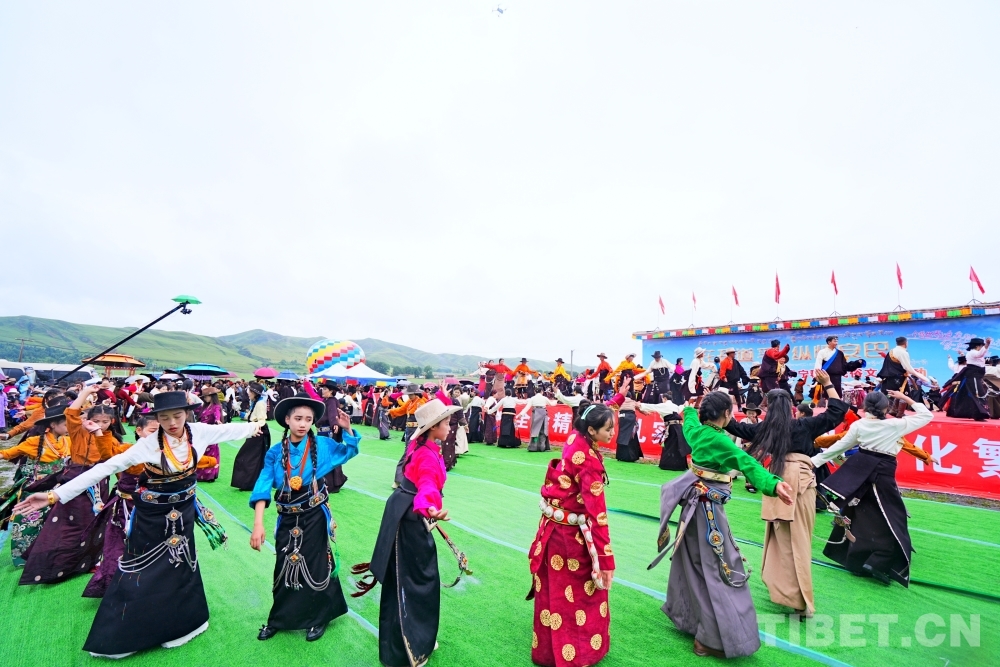 一場傳統(tǒng)的祈福儀式拉開活動的序幕。身著盛裝的騎手擎著彩旗,策馬轉繞祈福的煨桑臺,共同祝愿祖國繁榮昌盛,祝福家鄉(xiāng)安定祥和,各族人民團結進步。少兒服飾隊和300名當?shù)厝罕娛峙豕_悉數(shù)亮相在舞臺前,向四方來客表示誠摯歡迎?!百愸R”“吉祥大鍋莊”等民族歌舞精彩上演,游客也加入其中跳起團結鍋莊,盡享盛夏安巴之樂。