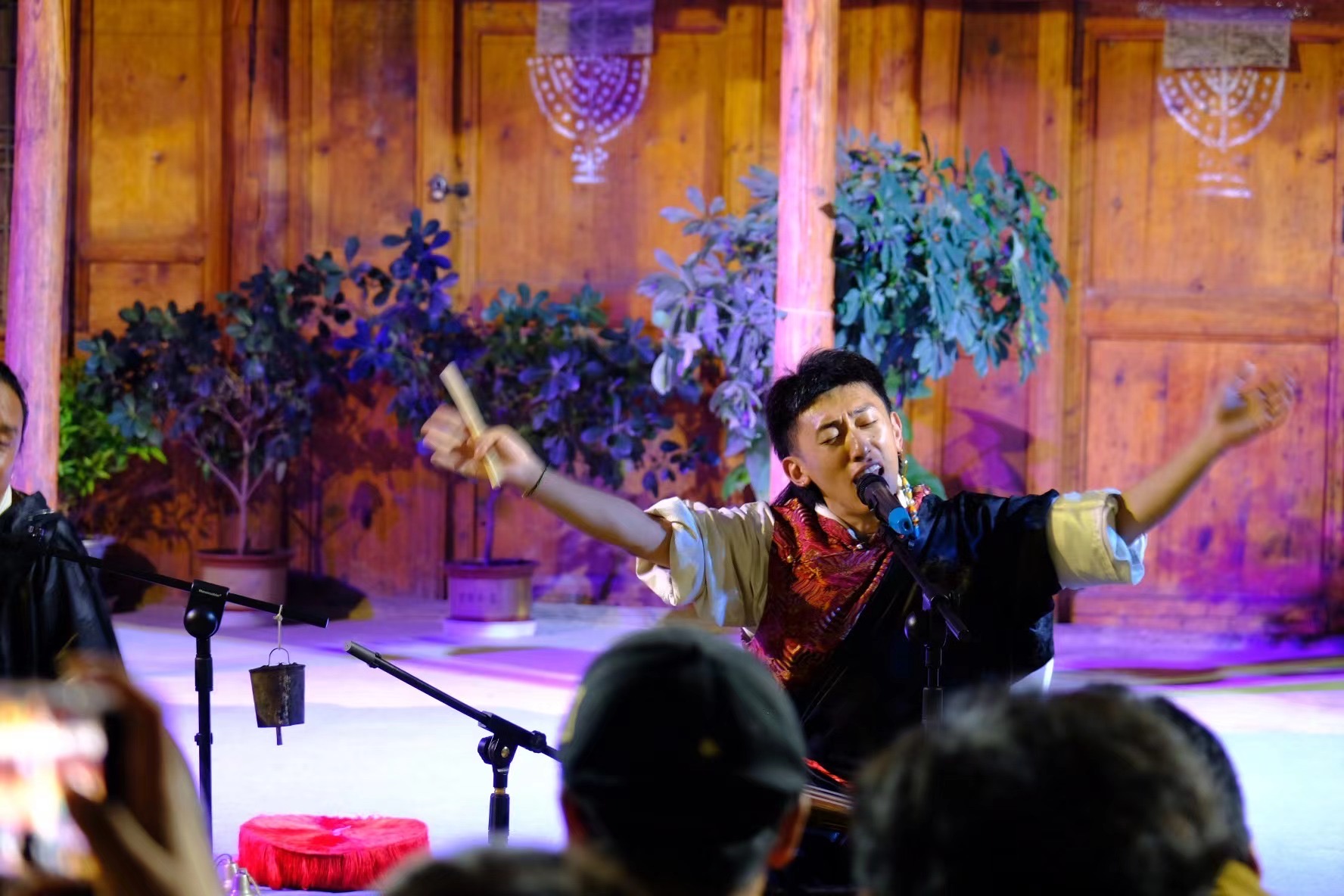 開幕儀式當(dāng)晚,為期三天的古院鄉(xiāng)村音樂周邀請到了三組耕耘在中華優(yōu)秀傳統(tǒng)音樂領(lǐng)域的青年藝術(shù)家。古院落作為獨(dú)特的舞臺(tái)空間,迎接了一場場別開生面的音樂聚會(huì)。