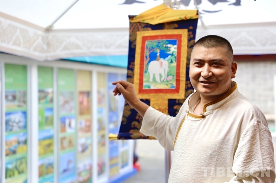 活動結(jié)束后,扎西尖措接受了記者的采訪。他說:“唐卡作為一種獨具青藏高原特色的繪畫藝術(shù),在千百年的繼承和發(fā)展中,不斷借鑒和吸收周邊各民族的文化藝術(shù)精華,經(jīng)過漫長的發(fā)展過程,逐漸形成了眾多異彩紛呈的風格流派,呈現(xiàn)出多姿多彩的風貌特征,并以其龐大的內(nèi)容體系,獨特的藝術(shù)表現(xiàn)形式,非凡的工藝水平在我國乃至世界藝術(shù)之林中熠熠生輝。如今隨著時代的進步,唐卡不僅僅限于宗教文化,更是民間的文化藝術(shù)。唐卡繪畫主題既有守正也有創(chuàng)新,有謳歌新時代的題材、也有禮贊廣大人民群眾的圖景。不拘泥于宗教為主的傳統(tǒng)題材。