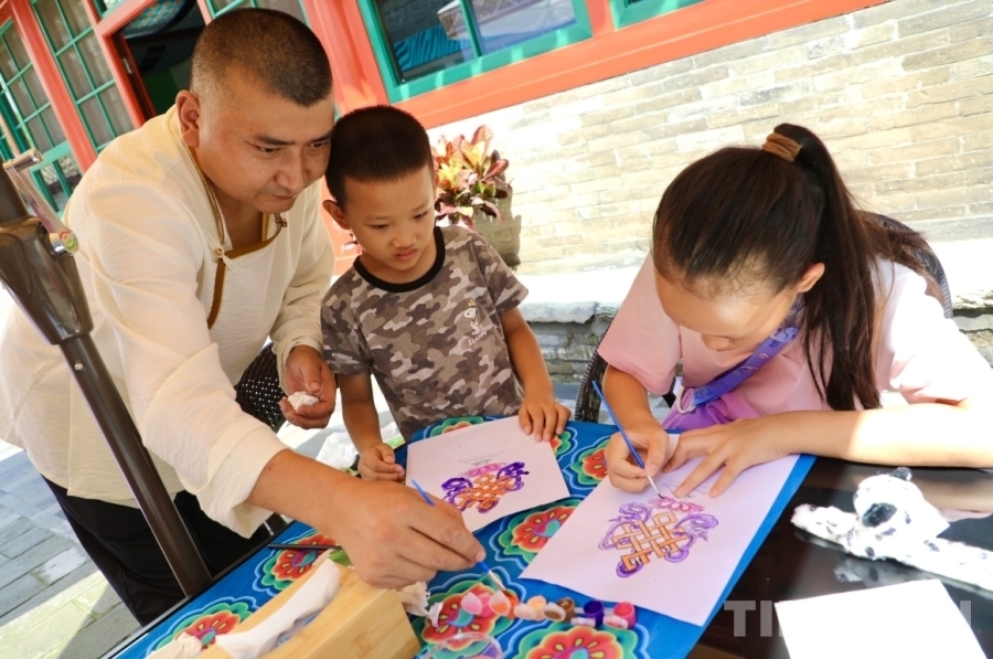8月9日,中華民族優(yōu)秀文化體驗項目輪展活動,在北京中華民族共同體體驗館(原蒙藏學校舊址)舉行。國家級非物質(zhì)文化遺產(chǎn)代表性項目熱貢藝術(shù)省級代表性傳承人、唐卡畫師扎西尖措?yún)⒓恿舜舜握寡莼顒樱瑢⒁粓鼍实奶瓶ㄋ囆g(shù)體驗課帶到了首都。