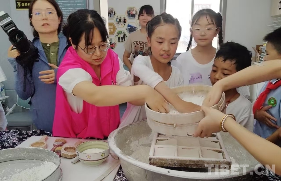 做印糕、纏盤扣、感受沙地文化……在頭蓬老街,理塘縣青少年研學(xué)團(tuán)和錢塘區(qū)義蓬街道少先隊員們感受了一場別開生面的非遺文化盛宴,印糕傳承人俞師傅展示了印糕的制作過程,遠(yuǎn)道而來的理塘“伢兒”還動手自己做印糕,纏盤扣。“看著簡單,自己做還是很有難度,但是做成功了又很有成就感!”尕瑪拉姆表示。