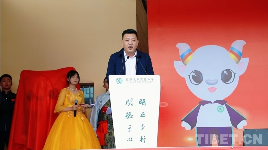圖為梁新在拉薩北京實驗中學(xué)十周年校慶上講話 圖片由校方提供