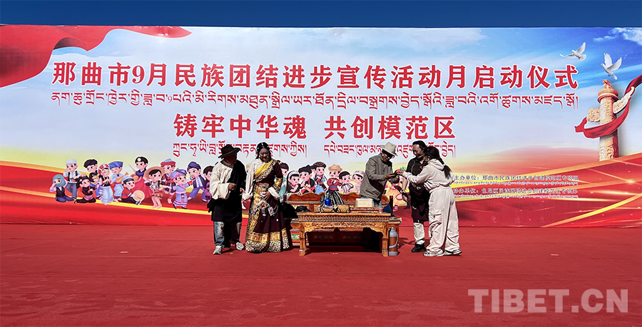 啟動儀式結(jié)束后,色尼區(qū)文藝團(tuán)為現(xiàn)場觀眾獻(xiàn)上了那曲市民族團(tuán)結(jié)進(jìn)步主題歌曲《我們的和美羌塘》《羌塘普古》《國旗下的牧民》等一系列精彩的文藝表演。其中,《羌塘普古》以其別具特色的藏族舞蹈,展現(xiàn)了那曲高原的壯麗與人民的豪邁;小品《中華民族一家親》通過生動的故事情節(jié)和真摯的情感表達(dá),深刻詮釋了中華民族多元一體的文化內(nèi)涵和各民族之間血濃于水的深厚情誼。現(xiàn)場笑聲不斷、氣氛活躍、熱鬧非凡,充分展示了那曲市民族團(tuán)結(jié)進(jìn)步的良好氛圍。(中國西藏網(wǎng) 記者/楊加才讓 旦曲)