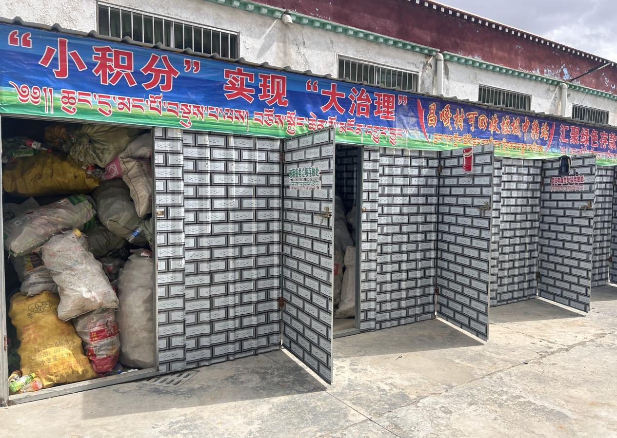積分制促進(jìn)了社區(qū)聯(lián)結(jié)和經(jīng)濟(jì)消費(fèi),還推動(dòng)了鄉(xiāng)村生態(tài)的良性治理。瓊結(jié)縣加麻鄉(xiāng)昌嘎村駐村工作隊(duì)的格桑多吉展示了“五門聯(lián)排”的可回收垃圾中轉(zhuǎn)站,“這些垃圾由村委會(huì)收集起來后統(tǒng)一送去回收,回收的資金會(huì)放在‘文化銀行’中用于購(gòu)買新的積分物品?!倍劣凇袄钡膩碓?,則依賴“綠色銀行”對(duì)村民的激勵(lì)?!鞍▔牡碾婏堨?、高壓鍋,都可以送到村委會(huì)進(jìn)行統(tǒng)一回收?!备裆6嗉榻B說,村民將分類整理好的垃圾送至“綠色銀行”,通過“兩委”班子和村務(wù)監(jiān)督委員會(huì)委員核定之后,可以根據(jù)《綠色銀行兌換項(xiàng)目表》直接兌換商品用于日常生產(chǎn)生活。自“綠色銀行”推行以來,昌嘎村累計(jì)兌換商品總價(jià)值6千元,讓行動(dòng)變積分、積分變商品,充分調(diào)動(dòng)了群眾參與鄉(xiāng)村生態(tài)建設(shè)的積極性。