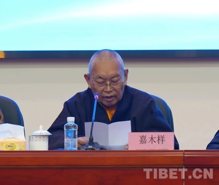 圖為中國藏語系高級佛學(xué)院院長嘉木樣致辭。章淑貞 攝
