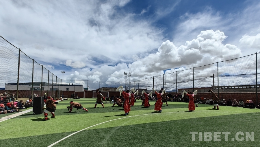 活動現(xiàn)場氣氛熱烈,演員們身著鮮艷的民族服裝,優(yōu)美的舞姿、飽滿的熱情,贏得現(xiàn)場觀眾的陣陣掌聲和喝彩聲。表演展現(xiàn)了班戈群眾積極進(jìn)取、愛國向上、樂于奉獻(xiàn)、熱愛生活的精神風(fēng)貌,表達(dá)了對黨和國家的感恩之情,對美好生活的向往。