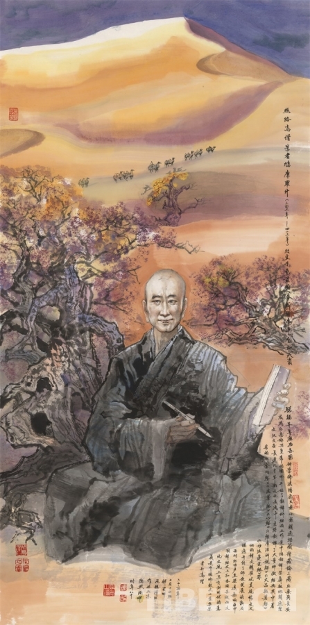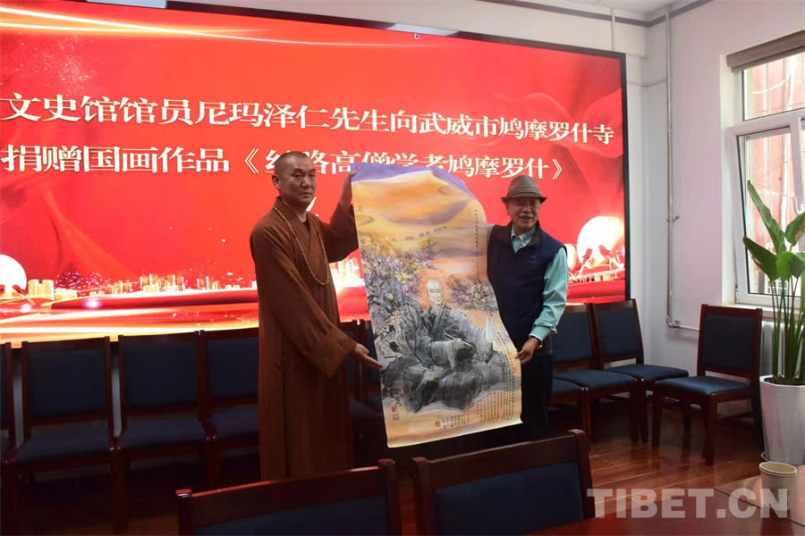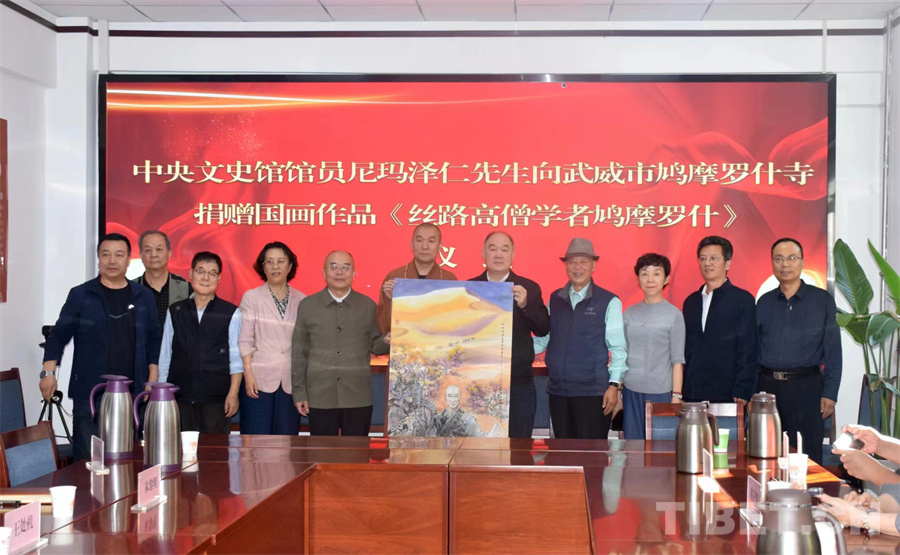中國西藏網(wǎng)訊 9月23日,甘肅省武威市鳩摩羅什寺在蘭州舉辦《絲路高僧學(xué)者鳩摩羅什》國畫作品捐贈(zèng)儀式,該作品由著名藏族畫家尼瑪澤仁捐贈(zèng)。
