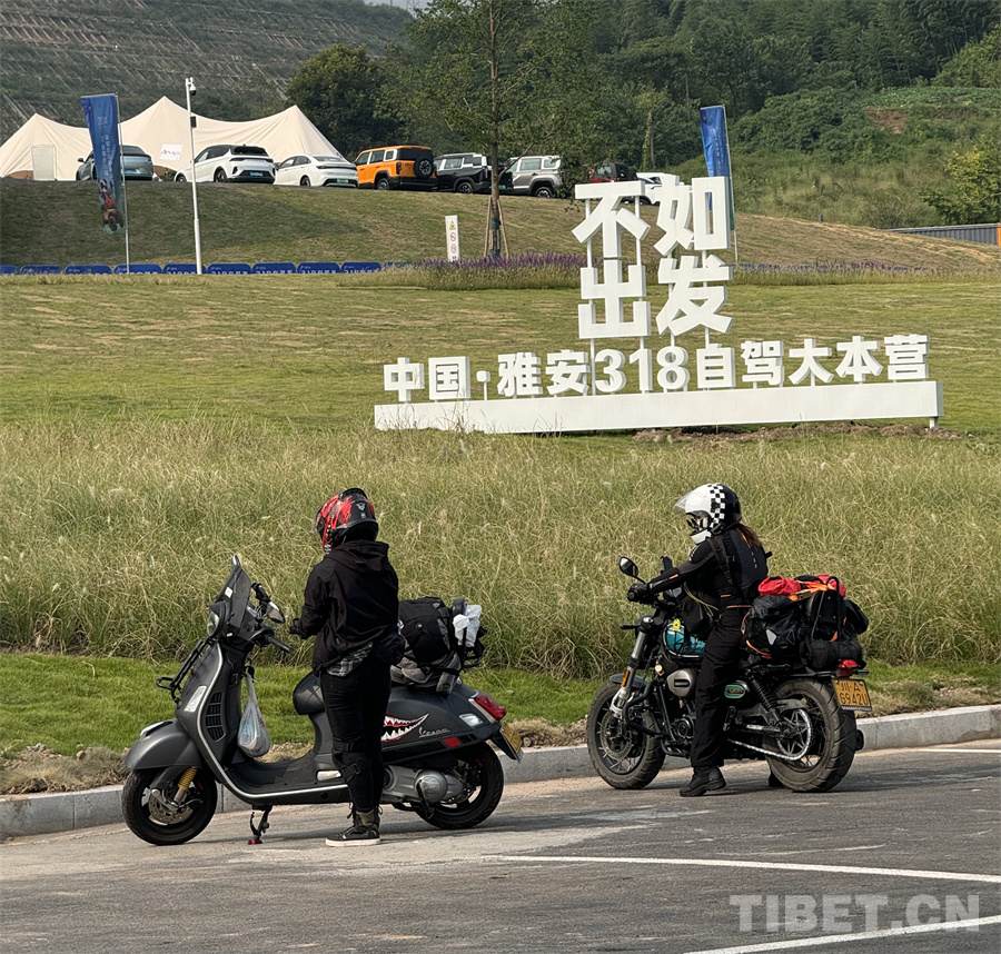 雅安318自駕大本營門口,在一塊“不如出發(fā)”的大型標(biāo)識牌面前,來自重慶和四川成都的兩位騎行女孩正整裝待發(fā)?!皣鴳c長假馬上來了,我們就想做一件平時難做的事情,騎行318直達拉薩!拉薩是另一個夢開始的地方,我們想到拉薩見一見朋友,再嘗一下非常好喝的酸奶?!闭硗曛螅瑑晌或T行女孩喊出了“我們拉薩見”的告別口號,戴上頭盔,伴著機車的轟鳴聲,騎行走上了318的遠方。(中國西藏網(wǎng) 記者/王妍丹 蘇洋)