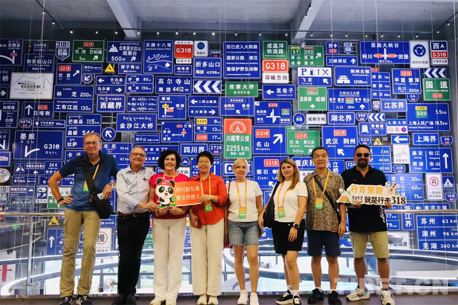 圖為國(guó)際旅行商代表團(tuán)在318微型博物館內(nèi)參觀(guān)打卡