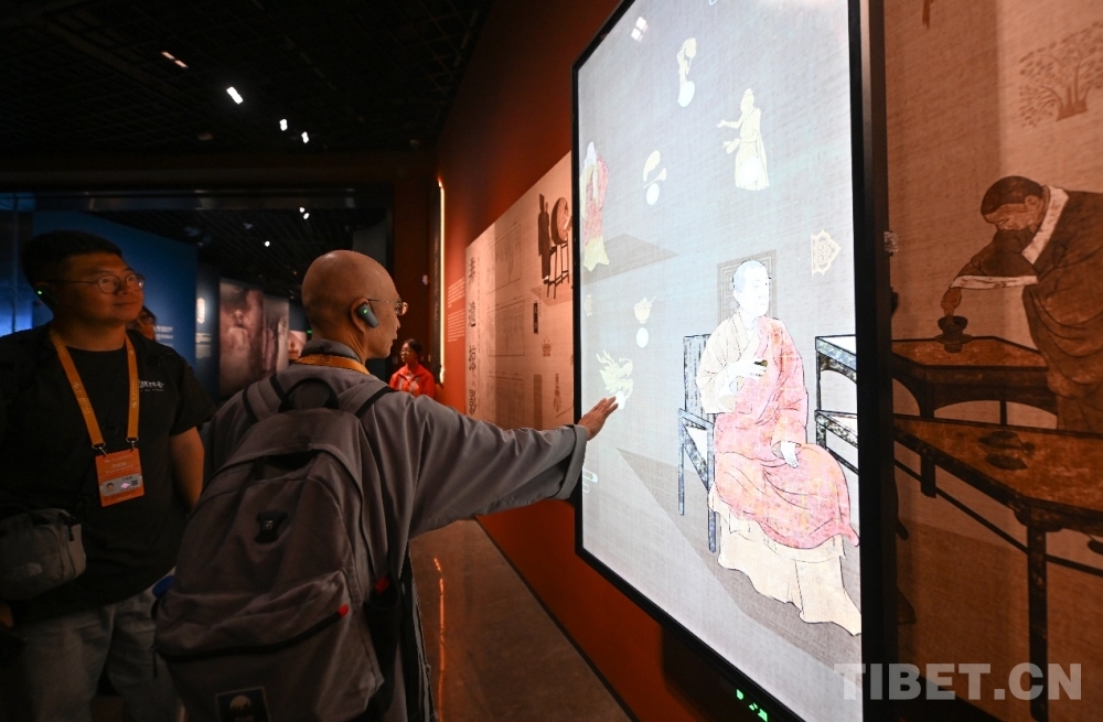 中國西藏網訊 10月15日,第六屆世界佛教論壇文化展陳揭幕儀式在浙江寧波彌勒博物館舉行,數字技術、人工智能的運用為本屆論壇增添亮點。該展覽包含“和合共生——世界佛教文化藝術展”、“同愿同行——中國佛教傳承發(fā)展主題創(chuàng)作展”、“翰墨佛緣——‘中國歷代繪畫大系’佛教藝術珍品展”三個展項,輔以影像、互動裝置和3D打印等當代藝術表現手段,為海內外與會嘉賓呈現佛教文化藝術的絢爛景觀和卓越成就,使觀眾們從藝術形式中領略中國佛教文化的精深內涵,助益于此次論壇更好的交流互鑒。(中國西藏網 記者/趙婧茹 桑吉)