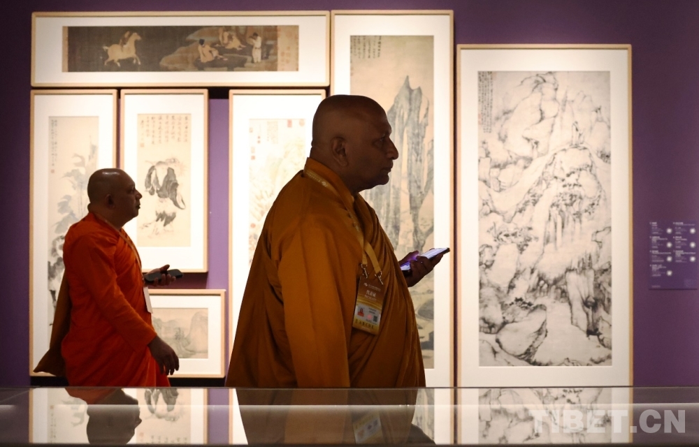 圖為與會者參觀“同愿同行——中國佛教傳承發(fā)展主題創(chuàng)作展”