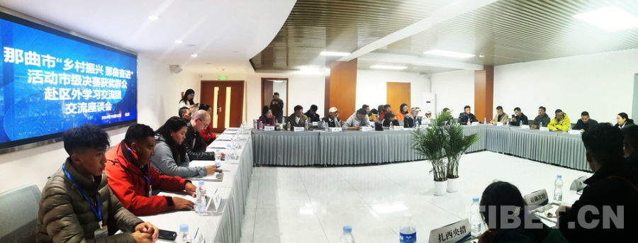 圖為10月22日,來自西藏自治區(qū)那曲市第三屆“鄉(xiāng)村振興 那曲奮進(jìn)”活動市級決賽第一名獲獎群眾代表區(qū)外學(xué)習(xí)交流團(tuán)抵達(dá)住地后,與中國藏學(xué)研究中心專家們進(jìn)行交流座談 攝影:劉莉