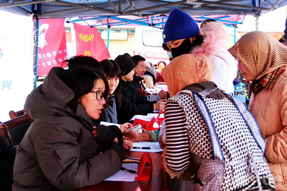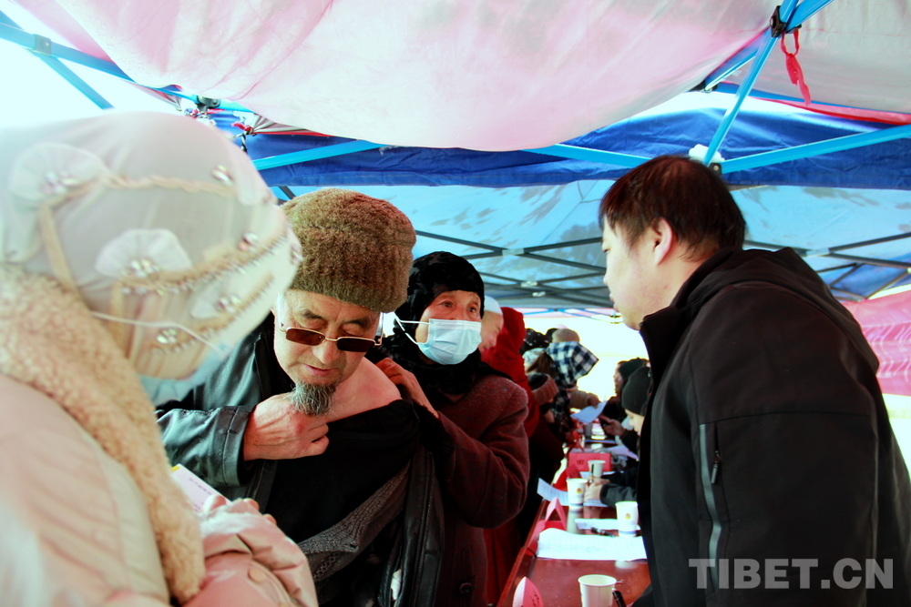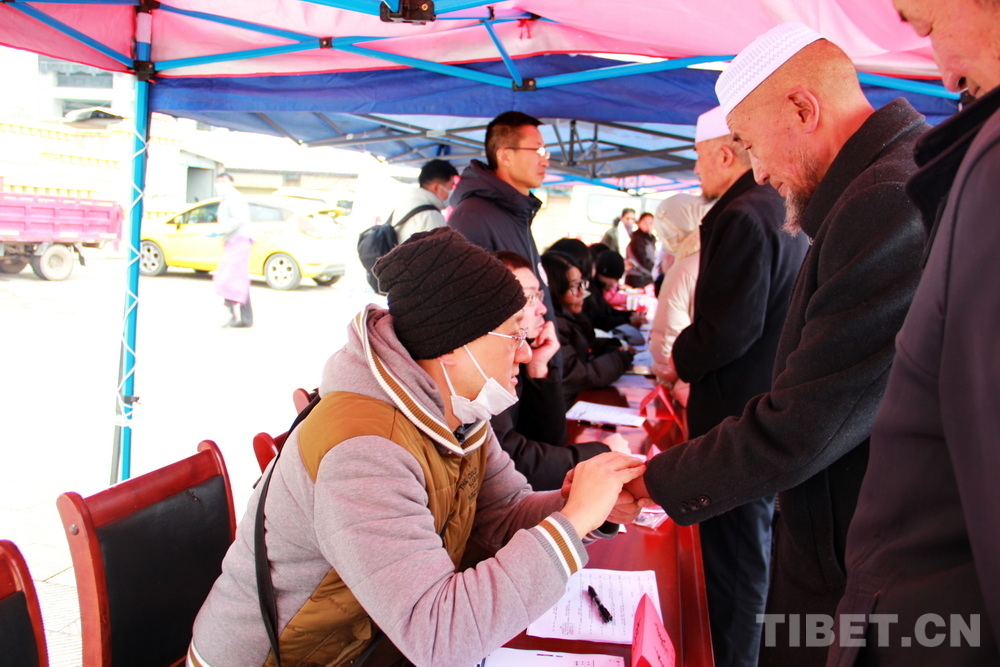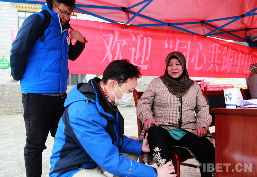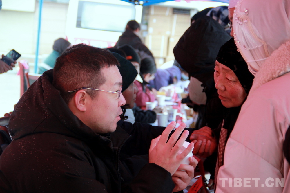 高原的大雪天,在室外即便來回走動也感覺格外寒冷。前來問診的患者絡繹不絕,醫(yī)務志愿者們堅守崗位,身披雪花,腳踩積雪,在翻譯的幫助下不停接診,一坐就是大半天。有的醫(yī)務志愿者專心接診,渾然不知衣服上已經(jīng)積雪;有的醫(yī)務志愿者發(fā)現(xiàn)患者不太理解疾病的分科,就同時擔起了分診工作;有的醫(yī)務志愿者自身高反強烈,吸著氧也要堅持接診……