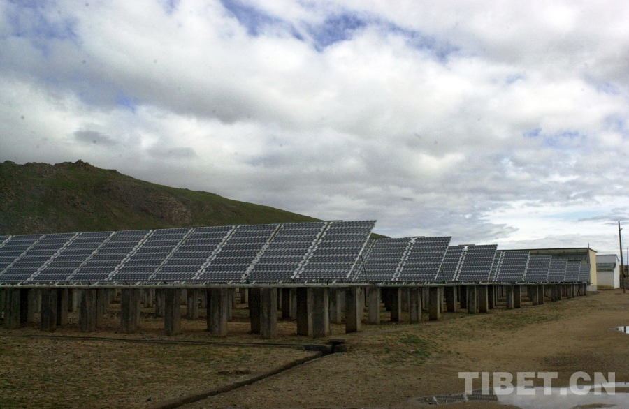 1995年,那曲地區(qū)雙湖特別區(qū)(現(xiàn)那曲市雙湖縣)建成25千瓦光伏電站,成為我國(guó)當(dāng)時(shí)所建的最大光伏電站(唐召明2009年8月2日攝)