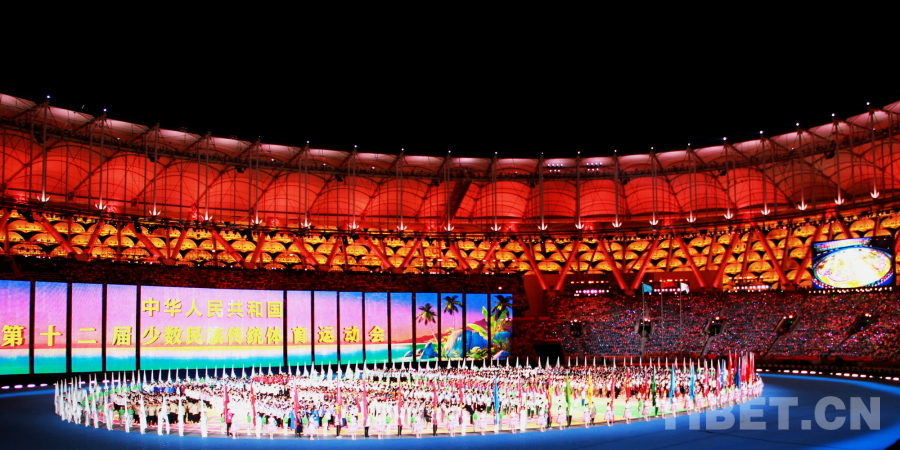 圖為第十二屆全國(guó)少數(shù)民族傳統(tǒng)體育運(yùn)動(dòng)會(huì)開(kāi)幕式現(xiàn)場(chǎng) 攝影:劉莉