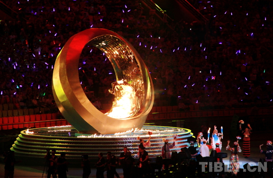 圖為第十二屆全國(guó)少數(shù)民族傳統(tǒng)體育運(yùn)動(dòng)會(huì)主火炬點(diǎn)燃 攝影:劉莉