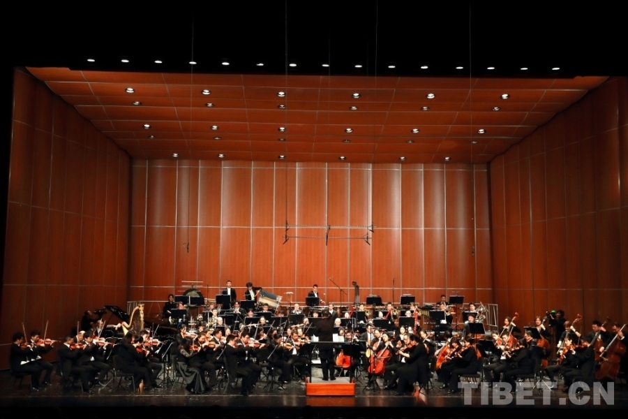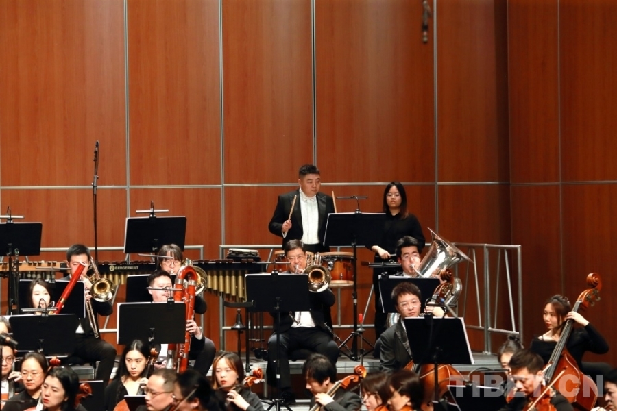 音樂會上,兩位藏族歌手演唱了交響樂主題曲《金橋》,歌曲高亢嘹亮、曲調(diào)悠揚。藏戲、山歌等元素的加入,讓交響樂更加豐富,充滿了濃郁的民族風(fēng)情。