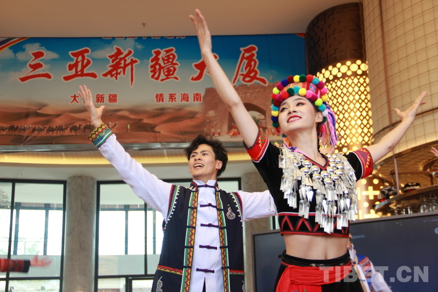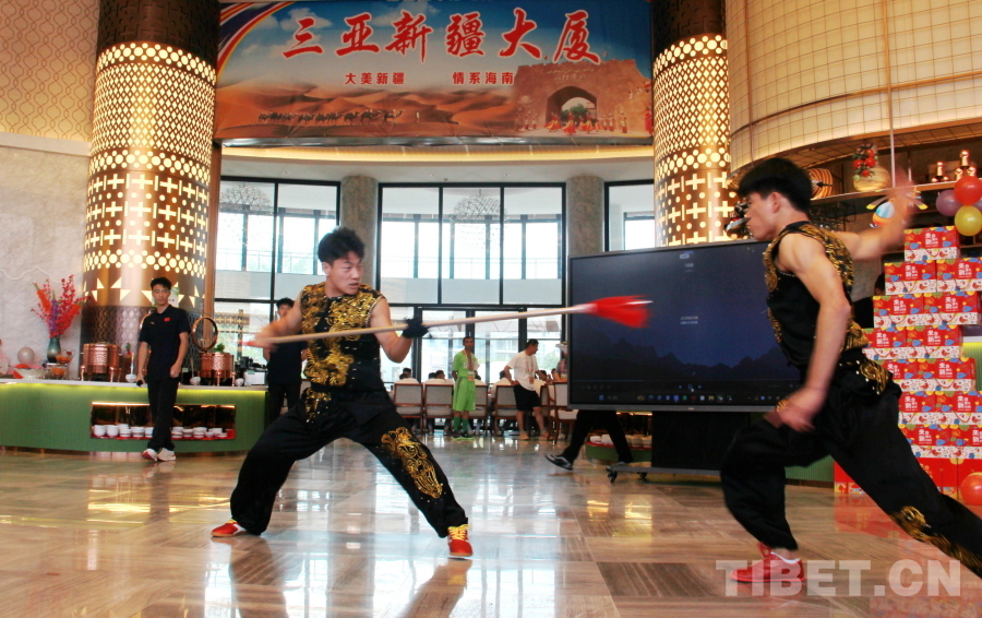 中國(guó)西藏網(wǎng)訊 精彩的傳統(tǒng)武術(shù)、悠揚(yáng)的歌聲、優(yōu)美的舞蹈……一陣陣掌聲、笑聲、歡呼聲從新疆代表團(tuán)駐地海南三亞新疆大廈傳出。11月27日,新疆代表團(tuán)邀請(qǐng)湖南、云南、黑龍江代表團(tuán)來(lái)到駐地舉行主題為“交各民族好朋友”的聯(lián)誼活動(dòng)。