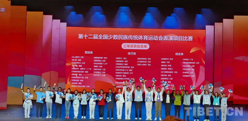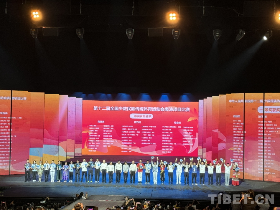 圖為第十二屆全國(guó)少數(shù)民族傳統(tǒng)體育運(yùn)動(dòng)會(huì)表演項(xiàng)目頒獎(jiǎng)晚會(huì)現(xiàn)場(chǎng) 西藏自治區(qū)體育局供圖