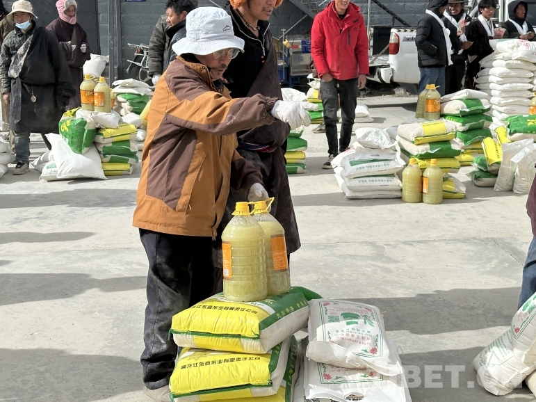 圖為藏比鄉(xiāng)牧民領(lǐng)取分紅物資現(xiàn)場