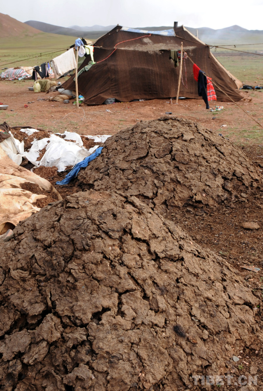 牦牛糞則是藏北牧民生活中世代賴以生存的主要燃料。草地上、山坡上、房前屋后,到處都可以見到它攤曬或壘垛的身影。