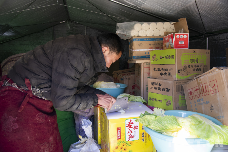 圖為在安置點(diǎn)的僧尼正在準(zhǔn)備當(dāng)日午飯,安置點(diǎn)內(nèi)受災(zāi)僧尼各項物資充足 攝影:趙振宇