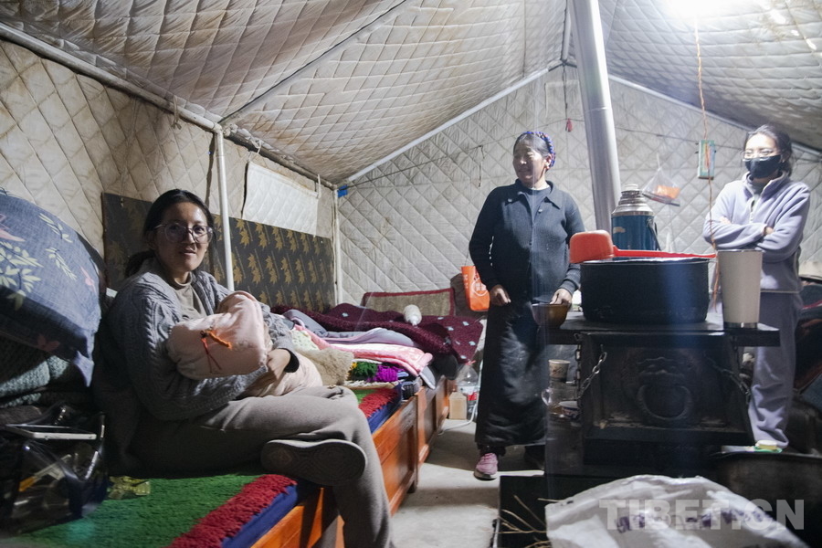 “地震是9點多鐘發(fā)生的,12點鐘我們就已經(jīng)搭建好了帳篷讓次央家住了進(jìn)去,可以說她是全村第一個住進(jìn)帳篷的人??紤]到孩子剛剛出生,我們緊急調(diào)運(yùn)來火爐,讓次央家中第一個升起爐火取暖?!边_(dá)娃白珍說地震發(fā)生后,村兩委及駐村工作隊干部第一時間趕往平時關(guān)照的特殊群眾家中,優(yōu)先幫助他們解決地震后遇到的困難。