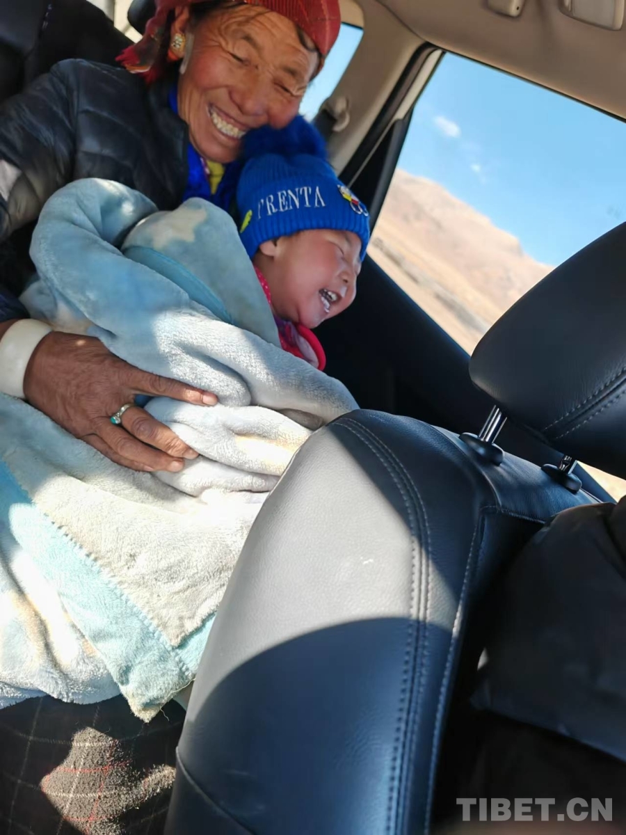 找到了!旦珍的家人懸著的心雖然放下了,但震區(qū)余震不斷,情況復(fù)雜,從聶孜村到木隊(duì)村,有130余公里的遙遠(yuǎn)路途,家里又沒(méi)有車(chē),這讓旦珍的家人們犯了難。多布扎鄉(xiāng)黨委、政府了解到這一情況后,立即決定派人驅(qū)車(chē)前往災(zāi)區(qū)接回寶寶并妥善安置到其奶奶家中。經(jīng)多方聯(lián)系協(xié)調(diào),在聶孜村駐村工作隊(duì)隊(duì)員的陪同下,1月7日16時(shí)50分,寶寶與奶奶在木隊(duì)村搭建的救災(zāi)帳篷里成功會(huì)合,1月8日18時(shí)平安地返回了聶孜村家中。